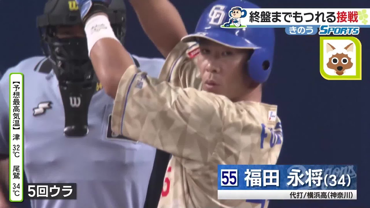 同一カード3連勝がかかった9日の広島戦。福田永将のホームランなどで試合は1点差で終盤までもつれました。