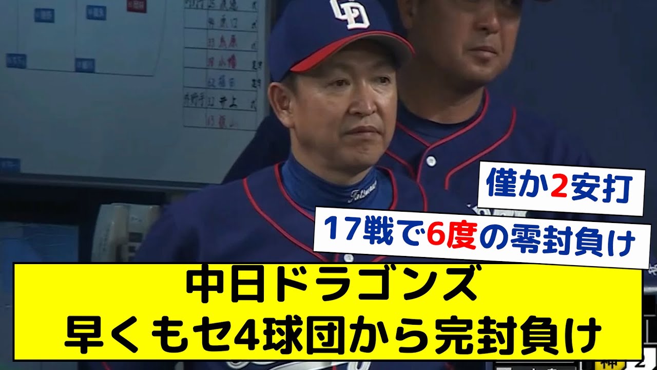 中日は22日の阪神戦に0―2で敗れ借金「5」。17試合で早くも今季6度目の零封負けを喫した。