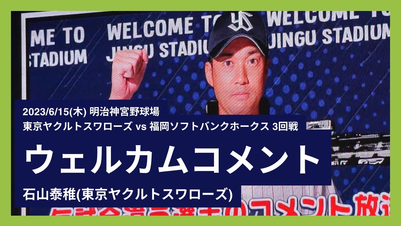 試合前 石山泰稚選手のウェルカムコメントが流れる。