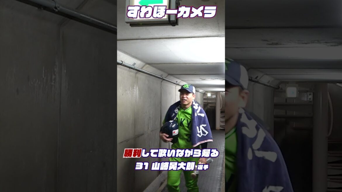 勝利後、ご機嫌で帰る山崎晃大朗選手