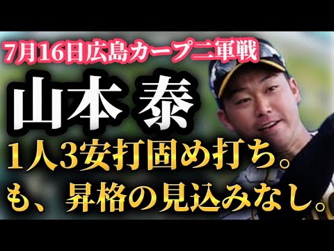 阪神タイガース【山本泰】7月16日カープ戦(二軍)山本泰、3安打固め打ちも、昇格の雰囲気はなし。現役ドラフト候補か。。。