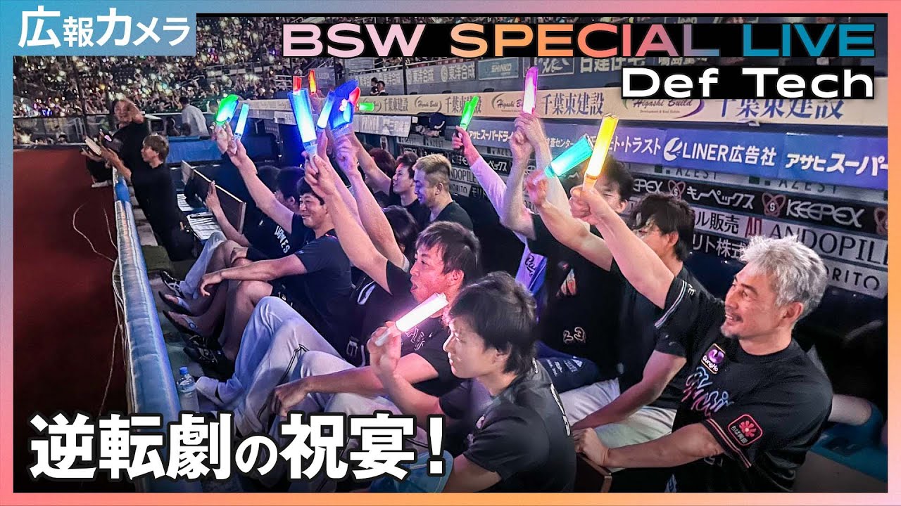 2023年7月15日、ハワイ育ちのShenさん(シェン)、東京出身のMicroさん(マイクロ)による2人組ユニット「Def Tech」が来場。試合後に行われた「BSW SPECIAL LIVE」を楽しむマリーンズベンチをカメラが撮影しました!