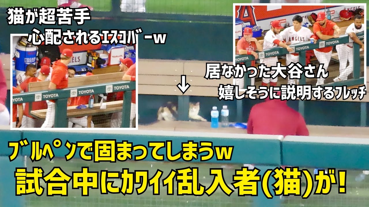 エンゼルスタジアムにかわいい乱入者(猫)が!