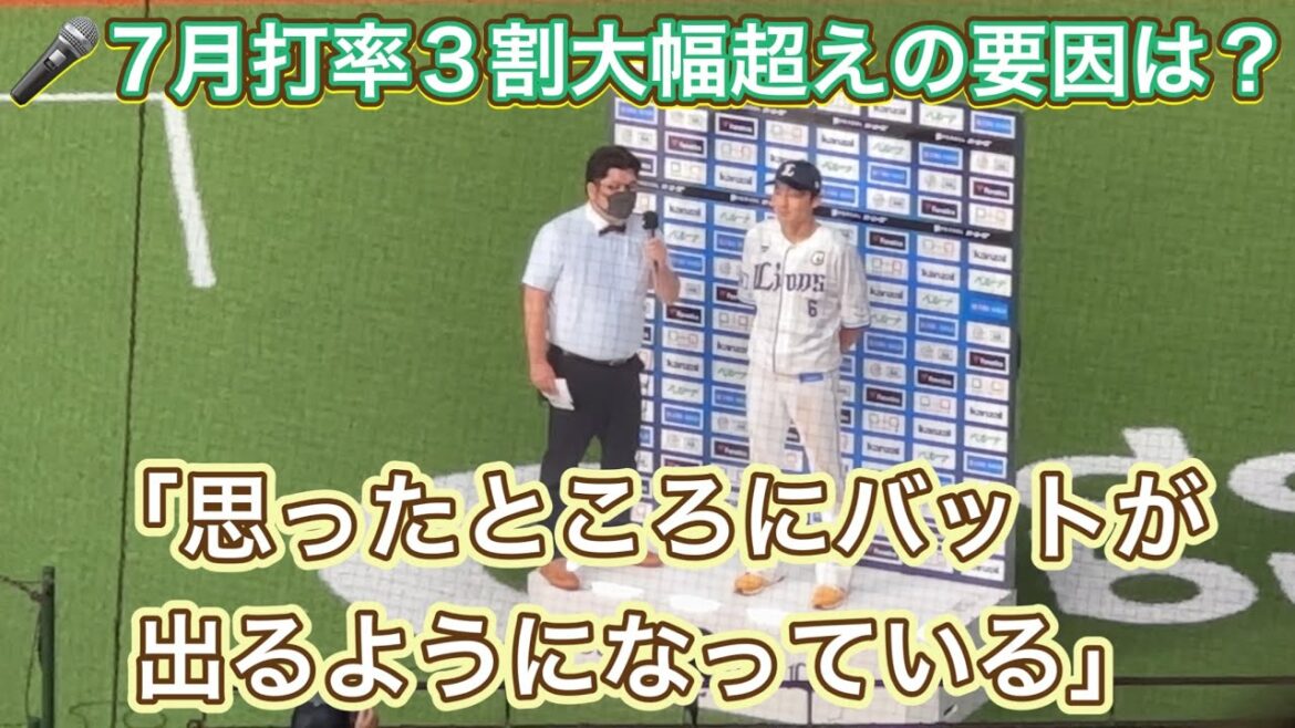 打のヒーローは主将・源田壮亮内野手(30)だった。1―1の同点で迎えた5回二死二塁、楽天先発・辛島のスライダーをはじき返し、右中間真っ二つの適時三塁打。「絶対にランナーをかえしてやろうという気持ちだった。打った瞬間に間を抜けていくと思った。(7月になって)だんだん自分のタイミングで打てるようになってきて、思った所にバットを出せるようになってきた」と決勝打を振り返り、打率3割を超える7月の好調を語った。