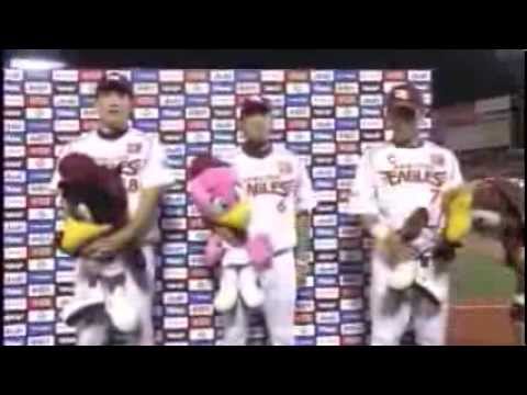 2013年9月6日の北海道日本ハムファイターズ18回戦、開幕から無傷の20連勝をかけた先発の田中将大が魂の完投。逆転勝利を呼び込んだ同点打の藤田一也と勝越しホームランを放った松井稼頭央とともにお立ち台に。 Tohoku Rakuten Golden Eagles東北楽天ゴールデンイーグルス松井稼頭央田中将大藤田一也 NPBHUB.COM | The Fanbase of Nippon Baseball & Nippon Professional Baseball