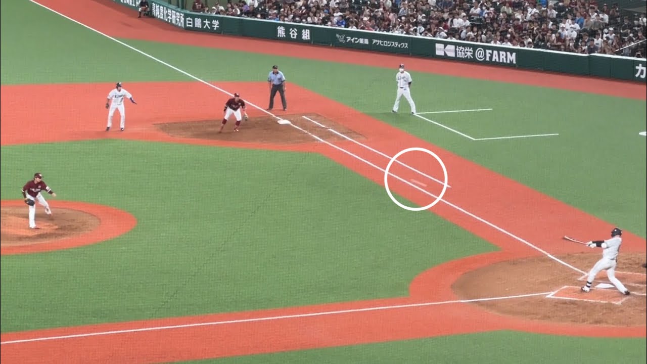 呉念庭が四球で歩いた2死一塁。長谷川はカウント1ボールから楽天・辛島の外角低めに沈む136キロのシュートをうまくすくい上げて左中間を破り、一塁から呉念庭が本塁まで走り抜けた・