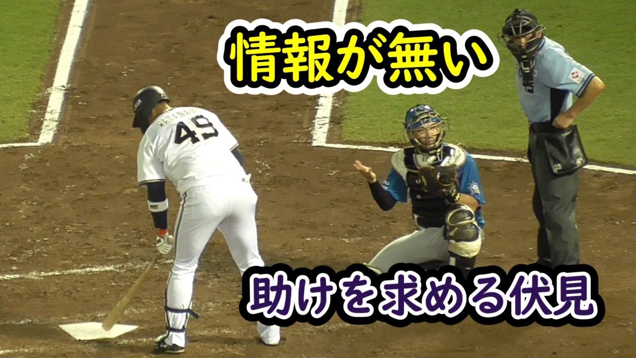 初球の後、伏見寅威選手が日ハムベンチの方を向いて何やらアピールしてました。