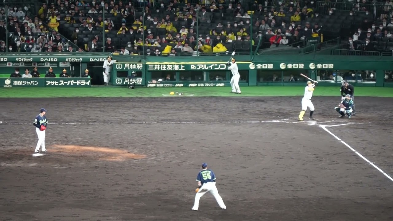 0アウト 1塁 佐藤輝 0-0より(走者:大山)レフトフライ