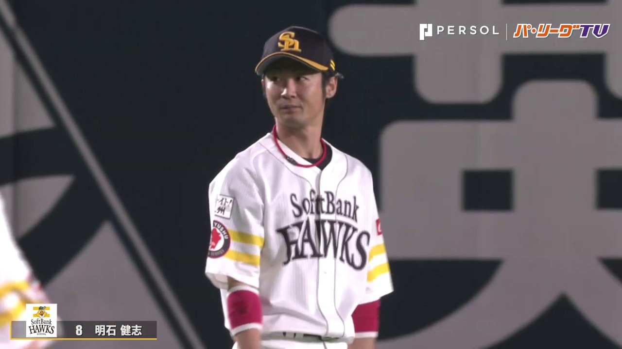 昨日は「打」で活躍し、ヒーローにも上がった福岡ソフトバンク・明石健志。今日は「守」で華麗なプレーを披露。ベテランはまだまだ頑張ります。