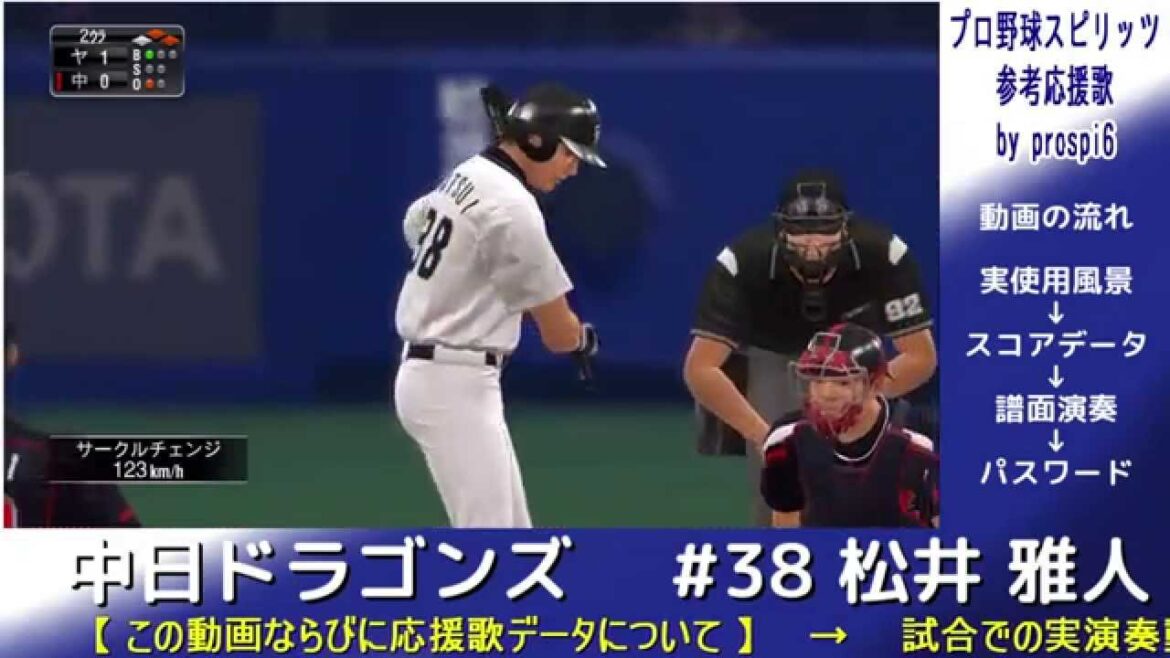 プロ野球スピリッツ2015での参考応援歌データ 中日ドラゴンズ 松井雅人選手の応援歌です。 実使用風景動画→スコアデータ観覧・演奏→パスワード(出力可能な場合のみ)の流れとなっております。 応援歌を覚える用途ではなく、ゲーム内の試合に臨場感を与えるのが目的であり 仕様上 一部再現できてない箇所や、短縮等がありますので、あくまで”参考応援歌”です。 【 プロ野球スピリッツ応援歌保管庫 → http://www.takeoff21.net/spi6/pass6.html 】 ORIX Buffaloesオリックス・バファローズプロ野球スピリッツプロ野球スピリッツ2015中日ドラゴンズ応援歌松井雅人 NPBHUB.COM | The Fanbase of Nippon Baseball & Nippon Professional Baseball