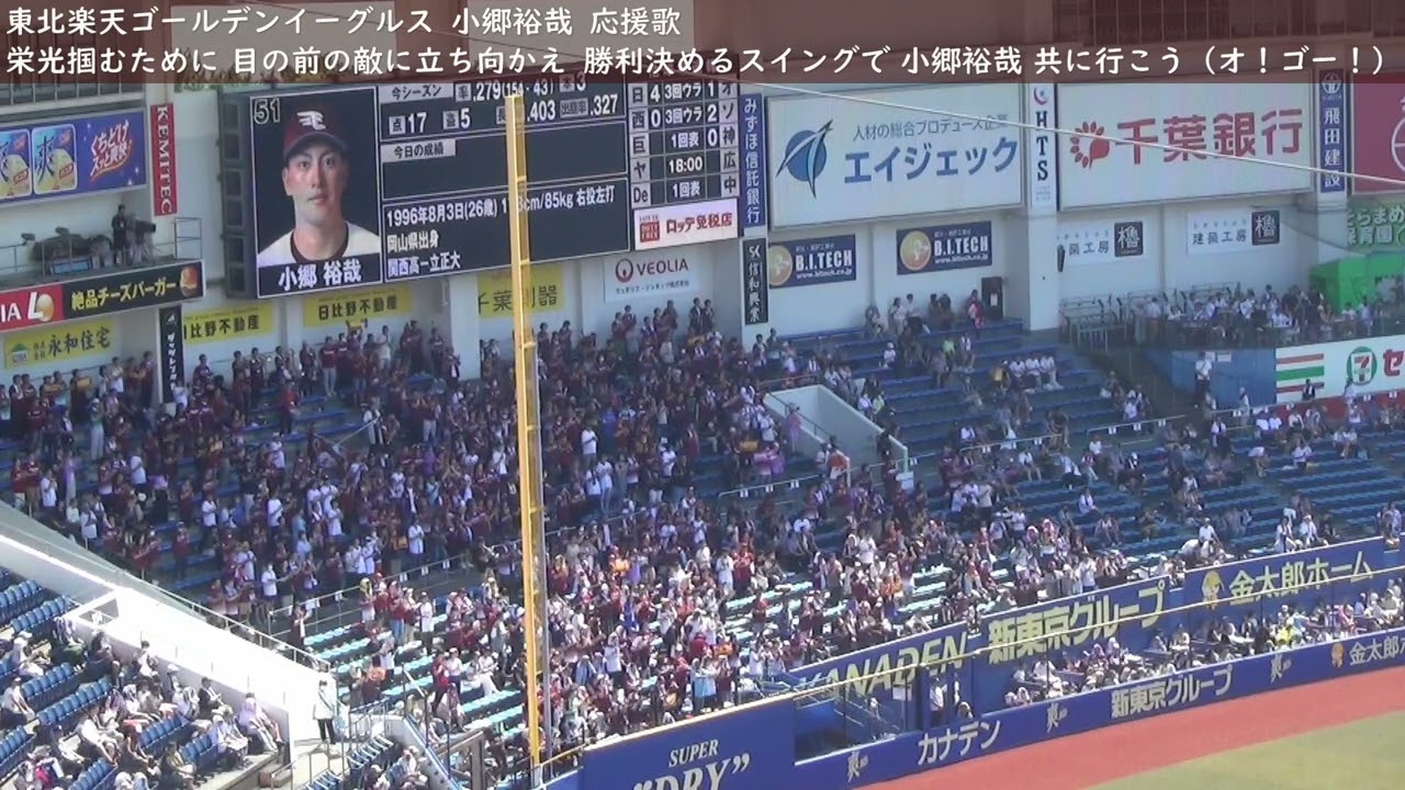 #東北楽天ゴールデンイーグルス #小郷裕哉 #応援歌 2023年7月2日 千葉ロッテマリーンズ vs 東北楽天ゴールデンイーグルス 1回表 に演奏された 小郷選手の応援歌です。 枡田慎太郎選手の応援歌が流用され小郷選手の応援歌となりました。 栄光掴むために 目の前の敵に立ち向かえ 勝利決めるスイングで 小郷裕哉 共に行こう(オ!ゴー!) Tohoku Rakuten Golden Eagles小郷裕哉東北楽天ゴールデンイーグルス NPBHUB.COM | The Fanbase of Nippon Baseball & Nippon Professional Baseball