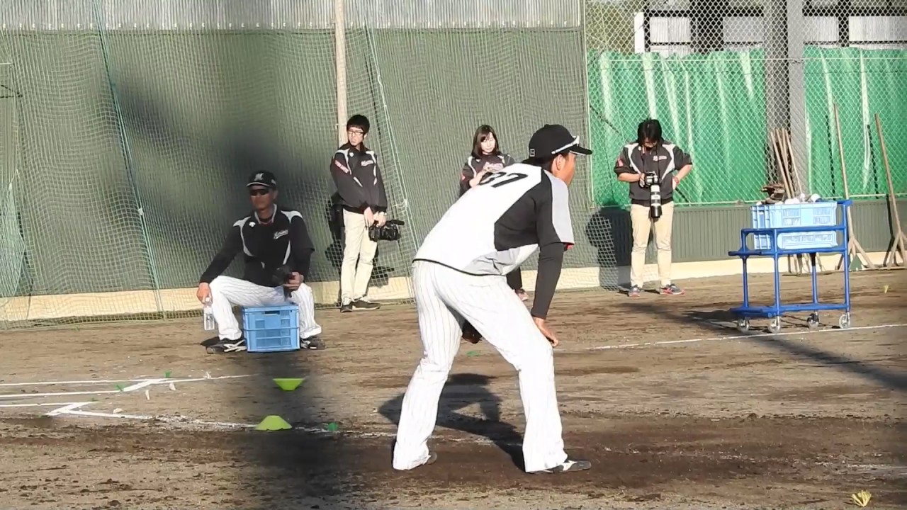 守備練。コーンとコーンの間に跳んできたボールを5連続で捕球できないと終了。 外野の声は香月と大河。 Chiba Lotte Marines三木亮千葉ロッテマリーンズ NPBHUB.COM | The Fanbase of Nippon Baseball & Nippon Professional Baseball