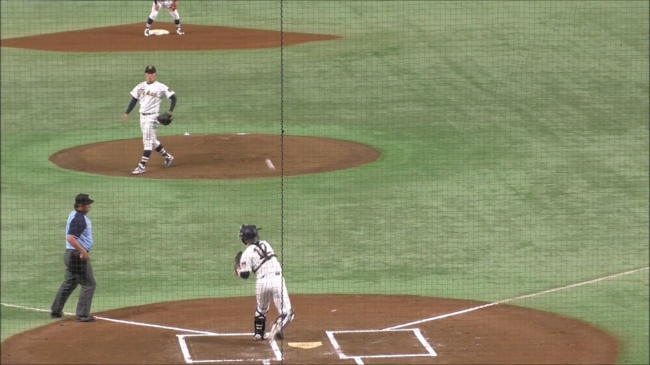 2018年6月11日東京ドームで開催された第67回全日本大学野球選手権 1回戦、東海大学(首都大学野球連盟)vs 九州産業大学(福岡六大学野球連盟)戦での東海大の海野隆司捕手のセカンドへのスローイングのシーン。