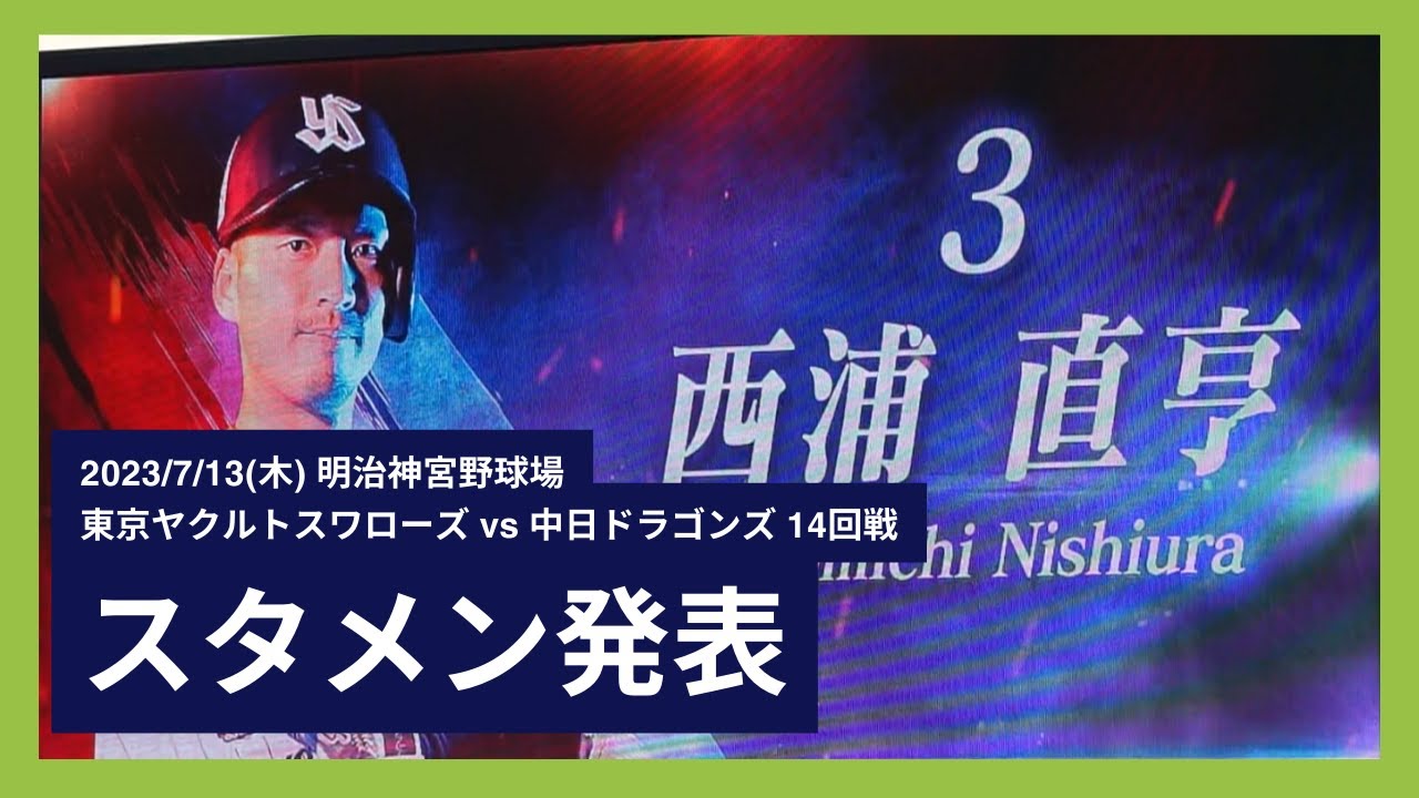 JERA セ・リーグ公式戦 2023/7/13(木) 明治神宮野球場 東京ヤクルトスワローズ vs 中日ドラゴンズ 14回戦