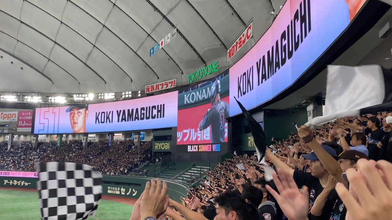 BLACK SUMMER WEEK 2023 2023年7月6日水曜日 東京ドーム 千葉ロッテマリーンズVS埼玉西武ライオンズ ① 遊 友杉篤暉 ② 左 角中勝也 ③ 二 中村奨吾 ④ 指 ポランコ ⑤ 右 山口航輝 ⑥ 三 安田尚憲 ⑦ 一 茶谷健太 ⑧ 捕 田村龍弘 ⑨ 中 藤原恭太 投 小島和哉 ラララ…山口 オオオ…×2 (演奏) やまぐっち! (演奏)やまぐっち!ラララ…×2 BLACK SUMMER WEEKBLACK SUMMER WEEK 2023BSWChiba Lotte Marineschibalottelotteやまぐっちロッテ千葉千葉ロッテ千葉ロッテマリーンズ山口山口航輝応援応援団応援歌 NPBHUB.COM | The Fanbase of Nippon Baseball & Nippon Professional Baseball