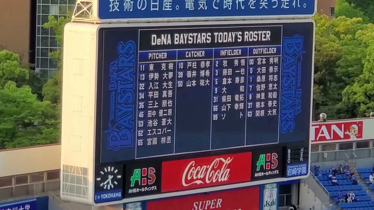 △【ROSTER】20220428 横浜DeNAベイスターズの控え ベンチ入り選手がビジョンに表示される @横浜スタジアム・ウィング席(STAR SIDE) ハマスタ