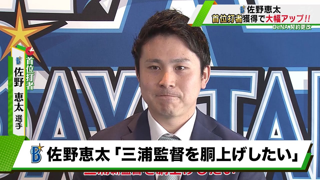 DeNAの佐野恵太(26)が、およそ3倍近い大幅アップで契約更改を行った。レイズへ移籍した筒香嘉智の後を受け継ぎ、「新キャプテン」・「新4番」として走り抜けた今シーズン。初の首位打者を獲得するなど、飛躍を遂げた1年となった。