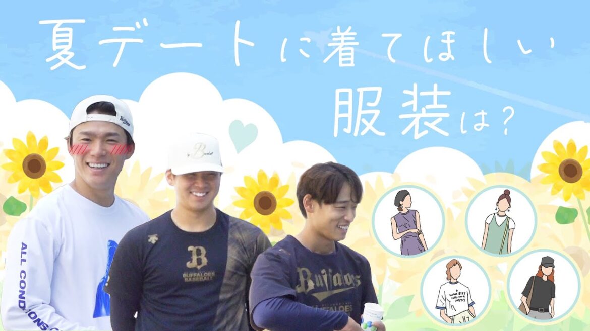 「カメラに向かってひとこと」今回は、舞洲にて「夏デートに着てほしい服装は?」というお題で4択の中から選んでもらいました!選手それぞれの服の好みやデートで行きたい場所が聞けちゃいました。オリ姫の皆さん、服装に困ったらご参考までに!全編はBPB DXで!!