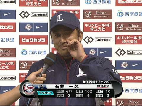 2ヶ月ぶりの復帰で、勝利をあげた石井一久がお立ち台に上がった。(2010年8月18日 埼玉西武ライオンズ対福岡ソフトバンクホークス) #埼玉西武ライオンズ #石井一久 #福岡ソフトバンクホークス #NPB #プロ野球 0818201008182010年8月18日Tohoku Rakuten Golden Eaglesお立ち台ソフトバンクパ・リーグパシフィックリーグヒーローインタビューホークスライオンズ埼玉東北楽天ゴールデンイーグルス石井一久福岡西武西武ドーム NPBHUB.COM | The Fanbase of Nippon Baseball & Nippon Professional Baseball