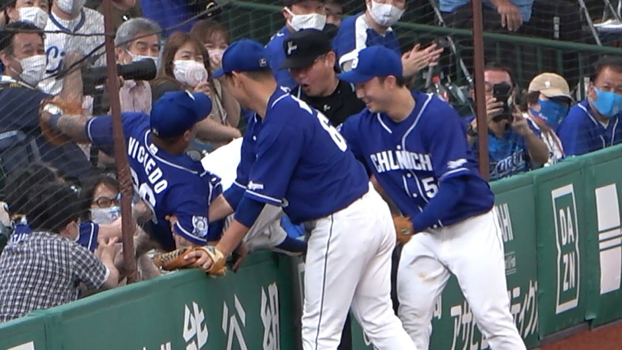 スタンドに飛び込んでフライをキャッチしたビシエドを藤嶋・直倫・審判・ファンが救い出す!(2021/06/12)