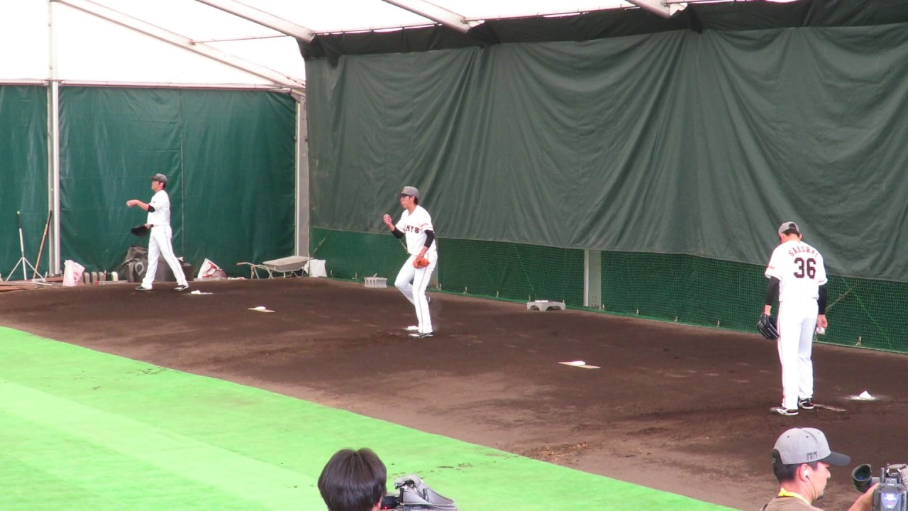 2017年 沖縄キャンプ 山口 鉄也、宮國 椋丞、桜井 俊貴(巨人) ブルペン 投球練習