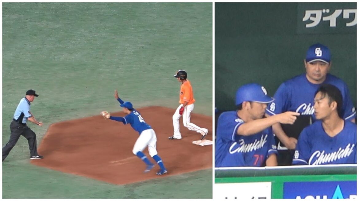 龍空うますぎるタッチで増田の盗塁を阻止!セーフ判定にすかさずベンチへリクエストを要求!(2023年7月29日)