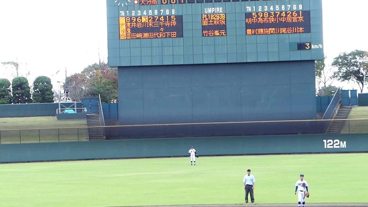 2019.10.25 佐賀みどりの森球場 秋季九州大会決勝 4回裏先頭打者の局面 その② 明豊先発1年生 京本投手(秋季九州大会パンフ未掲載)。公称186㌢75㌔。 vs 大分商4番川瀬1塁手 公称183㌢80㌔ 結果、反撃点に繋がり、京本投手降板きっかけの四球選ぶ。 ORIX Buffaloesオリックス・バファローズ川瀬堅斗 NPBHUB.COM | The Fanbase of Nippon Baseball & Nippon Professional Baseball