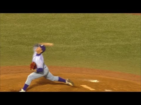 2017年11月13日に神宮球場で行われた第48回明治神宮野球大会、大学の部、日本体育大学 vs 九州共立大学 戦での日本体育大学の2番手・東妻勇輔投手の投球シーン Chiba Lotte Marines千葉ロッテマリーンズ東妻勇輔 NPBHUB.COM | The Fanbase of Nippon Baseball & Nippon Professional Baseball