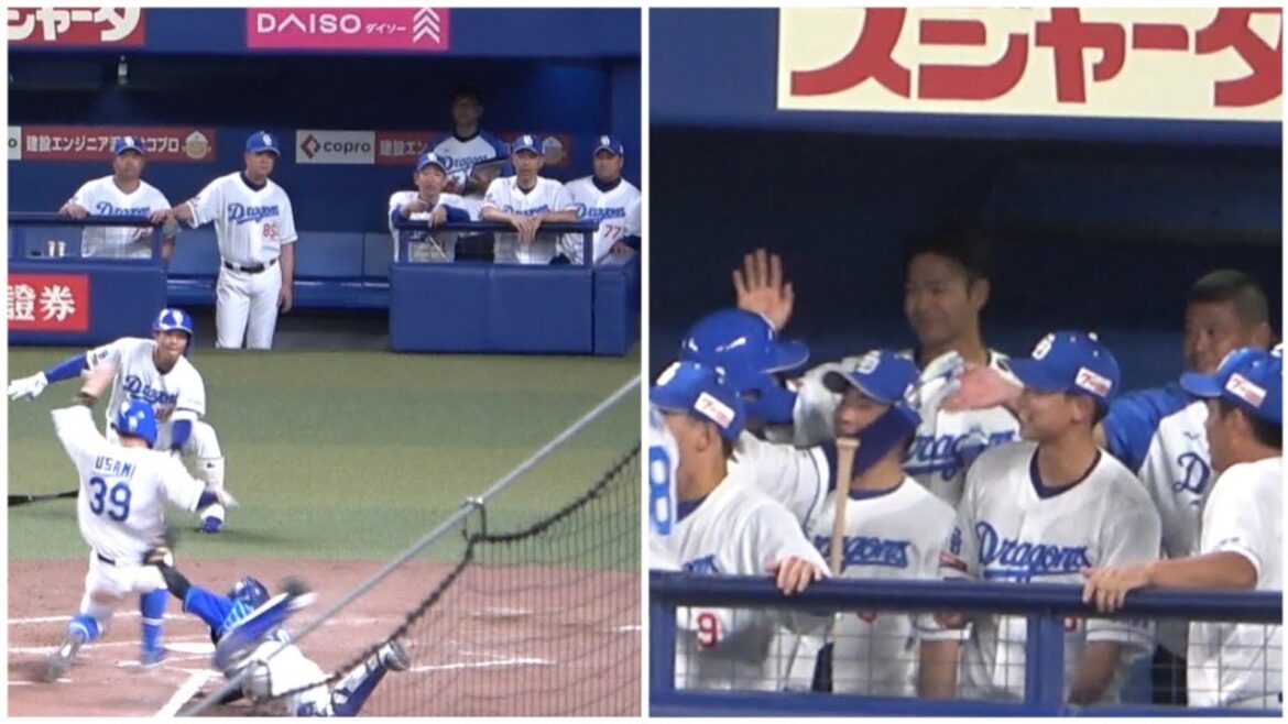 高橋周平のヒットで宇佐見が本塁突入もタッチアウト!周平を迎える選手たち!(2023年7月26日)