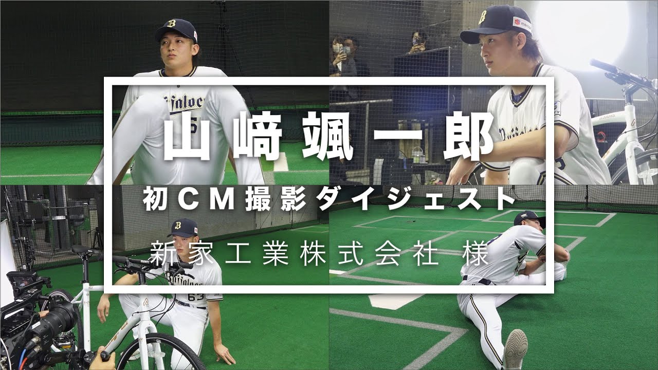 山崎颯一郎投手が新家工業株式会社のCMに出演!撮影の様子のダイジェストと出来上がったCMを合わせてお届けします。CMは、本日8月1日より京セラドーム大阪のビジョンにて放映スタート!