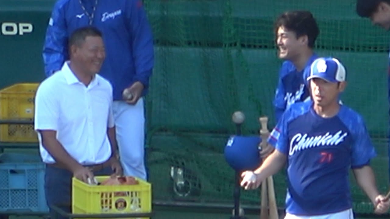 福留孝介に何か言ってベシッと叩かれる石川昂弥(笑) (2023/07/17)