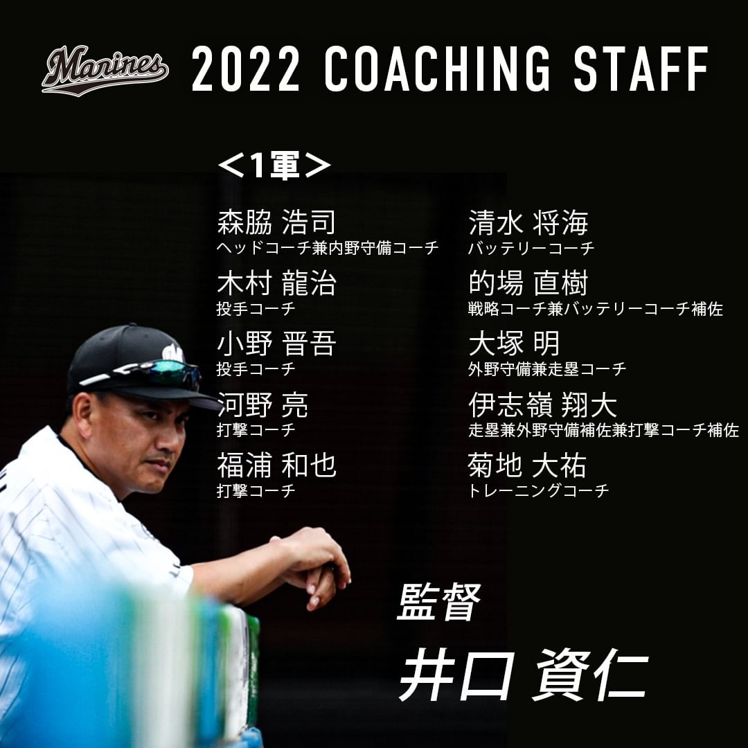 2022シーズンの1軍のコーチングスタッフが、決まりましたのでお知らせします。#chibalotte Chiba Lotte MarinesChiba Lotte Marines Official MediachibalotteNPB Pacific LeagueOfficial Media千葉ロッテマリーンズ NPBHUB.COM | The Fanbase of Nippon Baseball & Nippon Professional Baseball