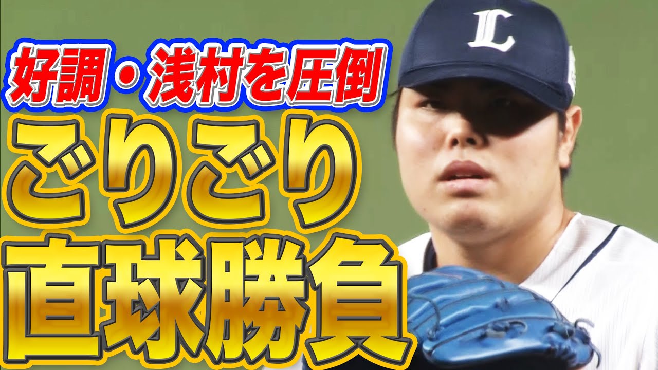 8回表、安打と四球でピンチを背負った埼玉西武・平良海馬。一発が出れば同点という場面で東北楽天・浅村栄斗を直球で圧倒。ゴリゴリ直球大迫力です。