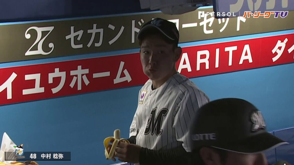 惜しくも初登板初勝利とはならなかったものの、素質の片鱗を見せた千葉ロッテのルーキー左腕・中村稔弥。イニング間にはエネルギー補給のために、とある食べ物をムッシャムシャ!ムッシャムシャ!