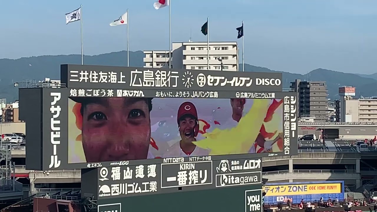 今日も会心の一撃 捉えた打球 赤い声援背に受け 行こうぜ坂倉