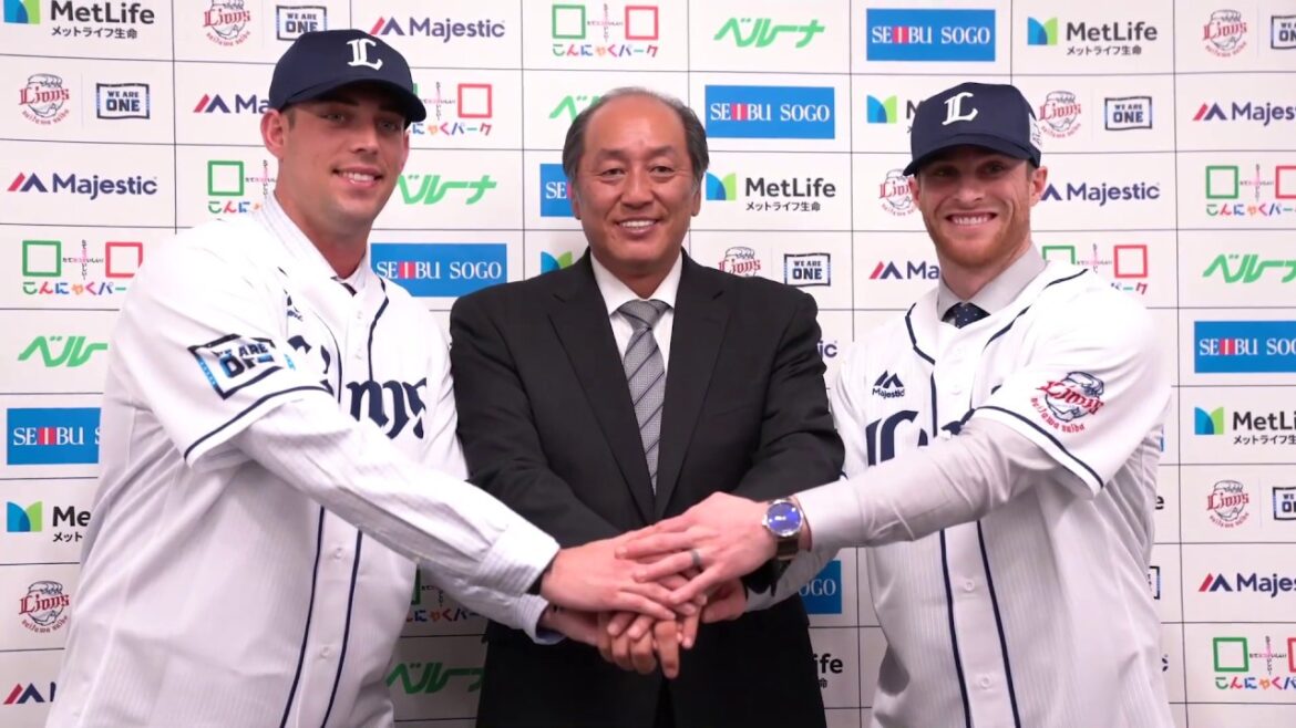 #ノリン 投手と #スパンジェンバーグ 選手が入団会見を行いました!アグレッシブなピッチングが自慢のノリン投手と、内野外野どこでも守れる器用さとスピードが売りのスパンジェンバーグ選手。両選手のプレーが今から楽しみです!