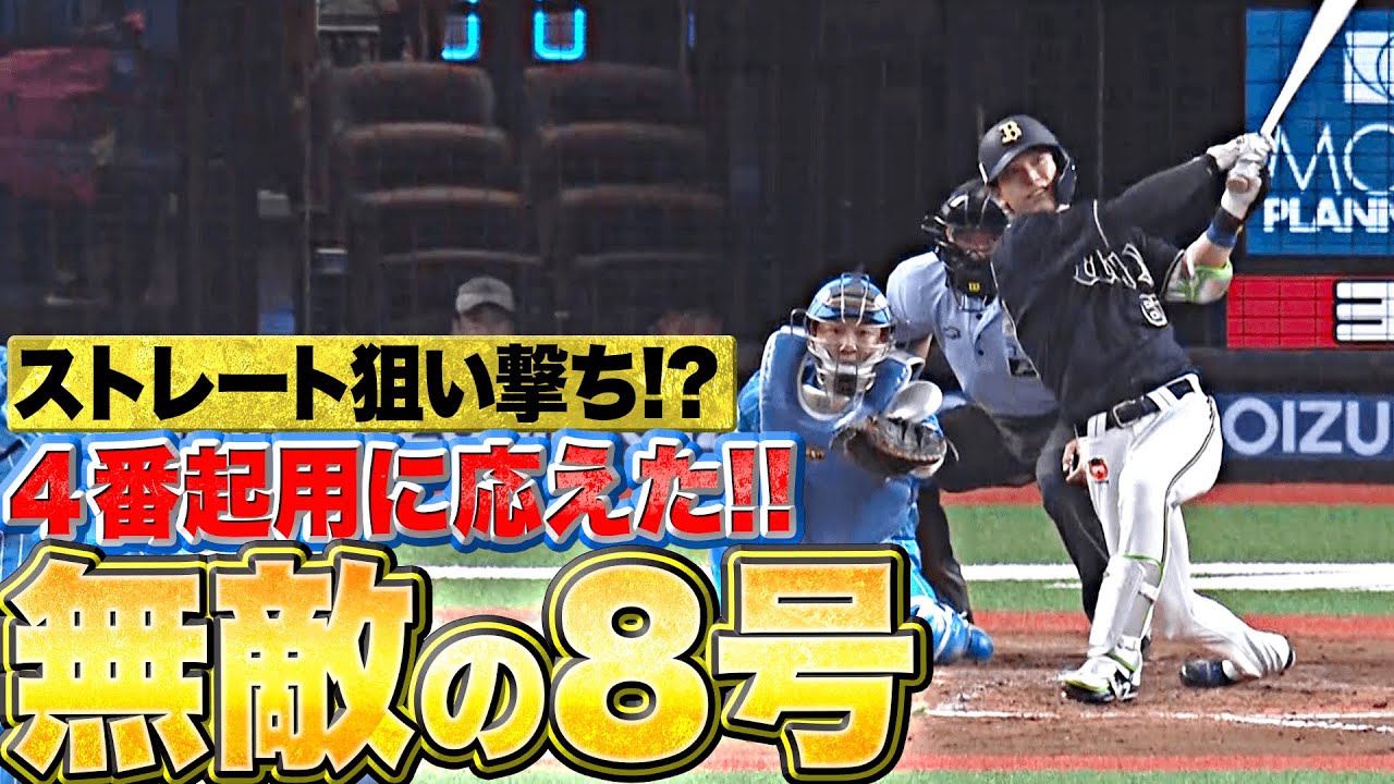 オリックス・中川圭太がストレートを振り抜くと打球は高々と舞い上がりレフトスタンドへ!!!! 4番起用に応える8号ソロで貴重な追加点を奪いました!!!