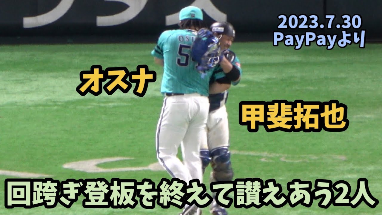 初めての回跨ぎ⚾️ソフトバンクホークス🦅オスナ快投⚾️千葉ロッテチャンテ5が煽る中‼️オスナ&甲斐拓也が大ピンチを乗り切り熱く抱擁😘2023.7.30⚾️ホークス対千葉ロッテ