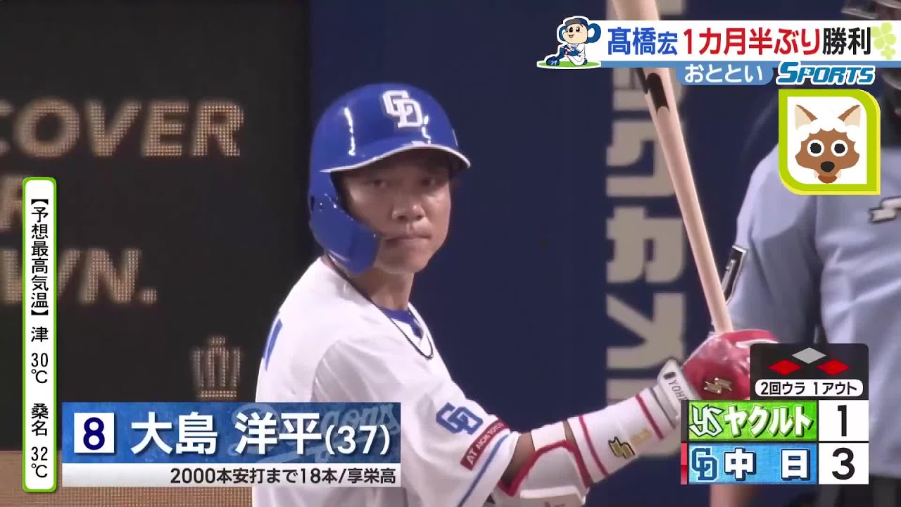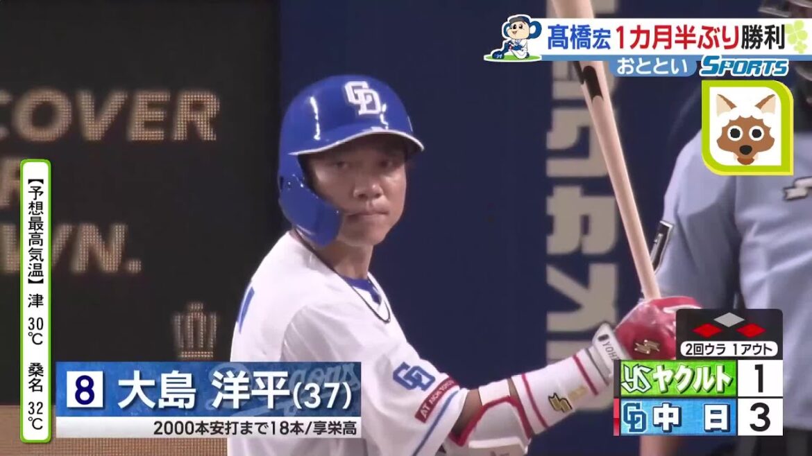 週末のヤクルトとの3連戦、ドラゴンズは5カードぶりの勝ち越しとなりました。2000本安打までのカウントが続く大島洋平選手、そして髙橋宏斗投手も1か月半ぶりの4勝目です。