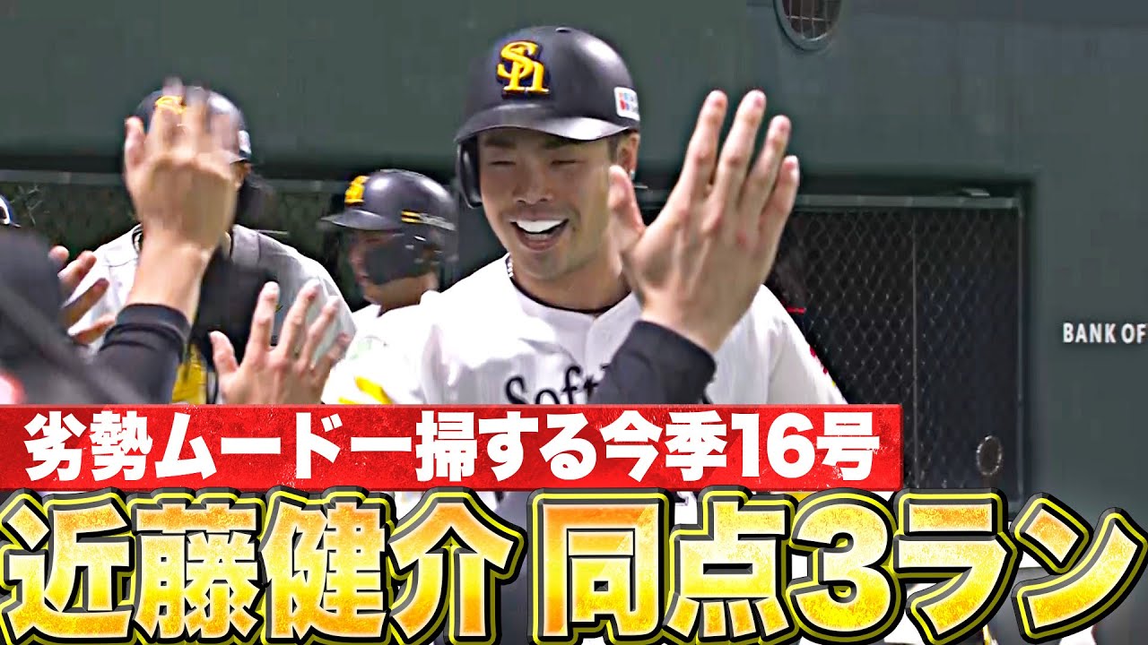 6回裏、まずは1点を返しておきたいという場面で、福岡ソフトバンク・近藤健介が逆方向への16号同点3ランホームラン!! チームを救う、劣勢ムードを振り払う一撃。効果的に3点を奪い、試合を一気に振り出しに戻した!!