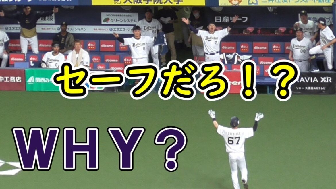 試合の流れを左右する場面で微妙な判定に不満を隠し切れていないオリックスベンチなど
