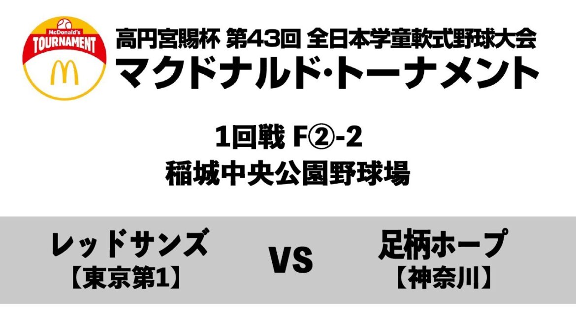 高円宮賜杯第43回全日本学童軟式野球大会マクドナルド・トーナメント 【2回戦:稲城中央公園野球場 2試合目】F②-2【東京第1】レッドサンズ vs 【神奈川】足柄ホープ Hanshin Tigersサンズ 野球阪神タイガース NPBHUB.COM | The Fanbase of Nippon Baseball & Nippon Professional Baseball
