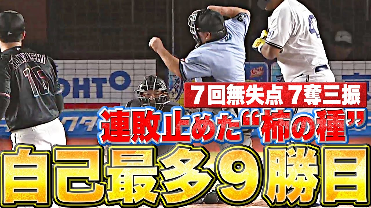 柿の種バッテリーの相性は抜群。千葉ロッテ・種市篤暉が制球力で投球数を抑えつつ、力強い直球も織り交ぜておさえつける。7回まで投じ、許した安打はわずか4本。奪三振は7、7回無失点の投球で防御率は2点台に突入。この勝利で自身3連勝。さらに自己最多となる9勝目を獲得。2桁勝利が見えてきた!!