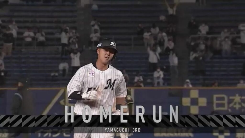 Pacific-League: 「時の人」からのパワーを貰ってホームラン! 千葉ロッテ・山口選手の値千金の勝ち越しホームラン! #千葉ロッテ #マリーンズ #山口航輝 選手 #ホームラン …