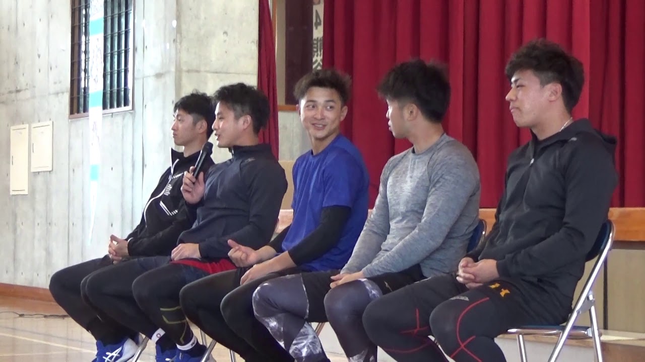 1月30日(木)、近本光司選手、木浪聖也選手、熊谷敬宥選手、島田海吏選手、植田海選手が宜野座村立松田小学校を訪問し、児童の皆さんとゲームなどでふれあいました!