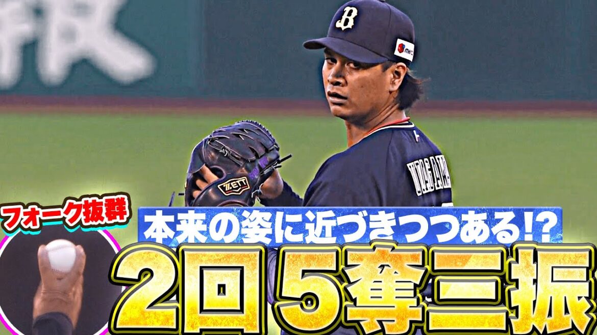オリックス・宇田川優希はいつもより早い、4回からの登板となったが、2イニングを無失点に抑え今季3勝目をあげた!!! 3者連続三振の圧巻のピッチングをみせた1イニング目。2イニング目はヒットと四球で1死1,2塁のピンチを作るも、キレキレのフォークで連続三振に抑え切り抜け、2回5奪三振で見事勝利投手を手にした!!