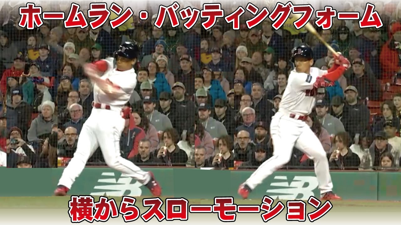 レッドソックス吉田正尚 第1号ホームランスイングを横からスローモーションで観る