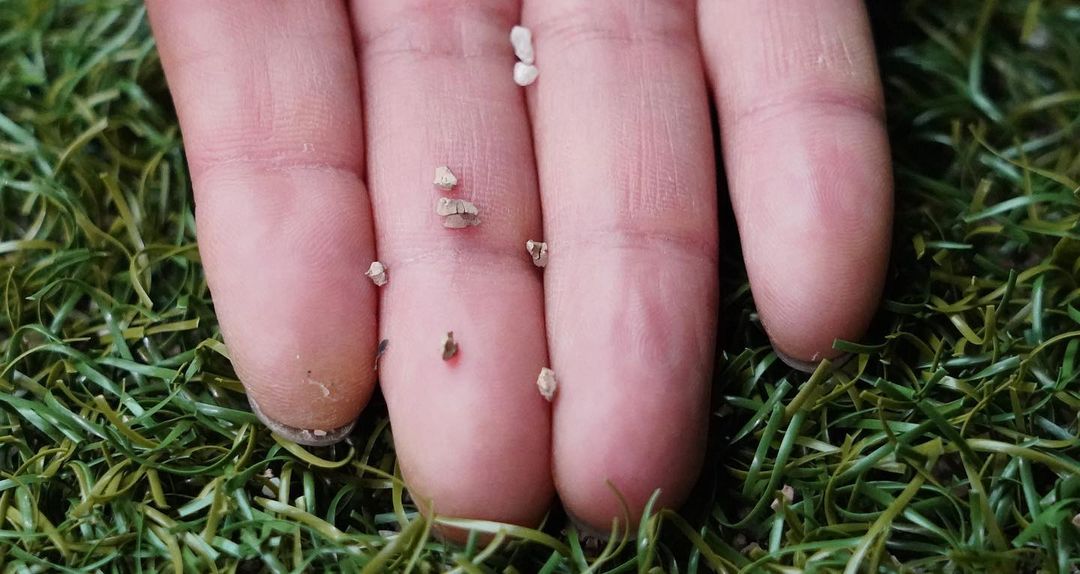 砂とゴムチップが充填され、芝葉部分は65ミリに長くなりました。
