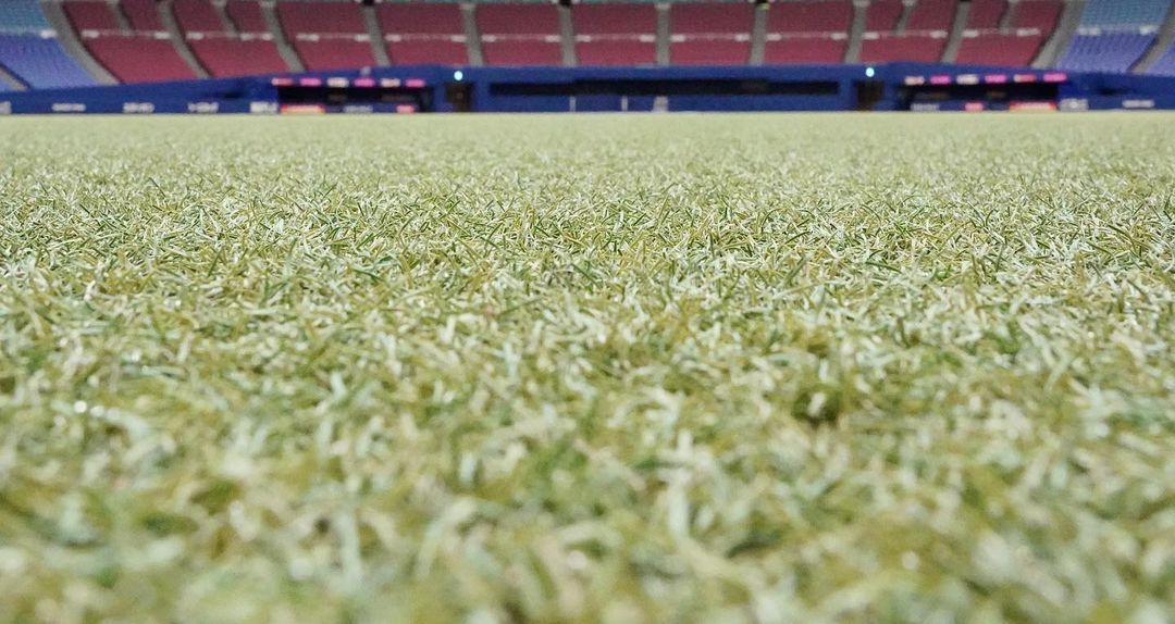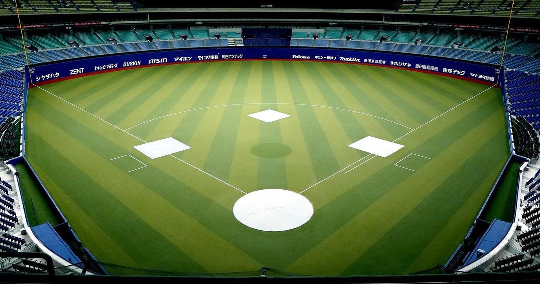 ドラゴンズの本拠地バンテリンドームナゴヤの人工芝が全面張り替え完了。美しいツートンカラーになりました。