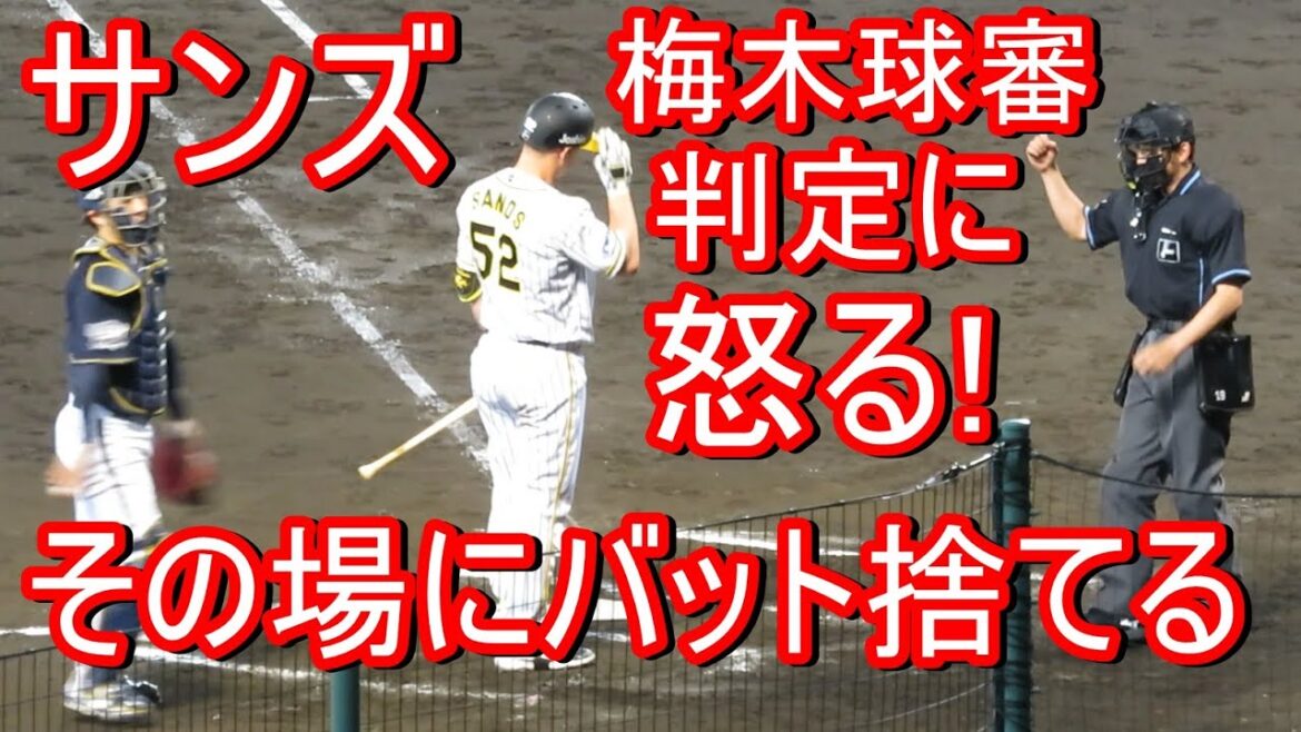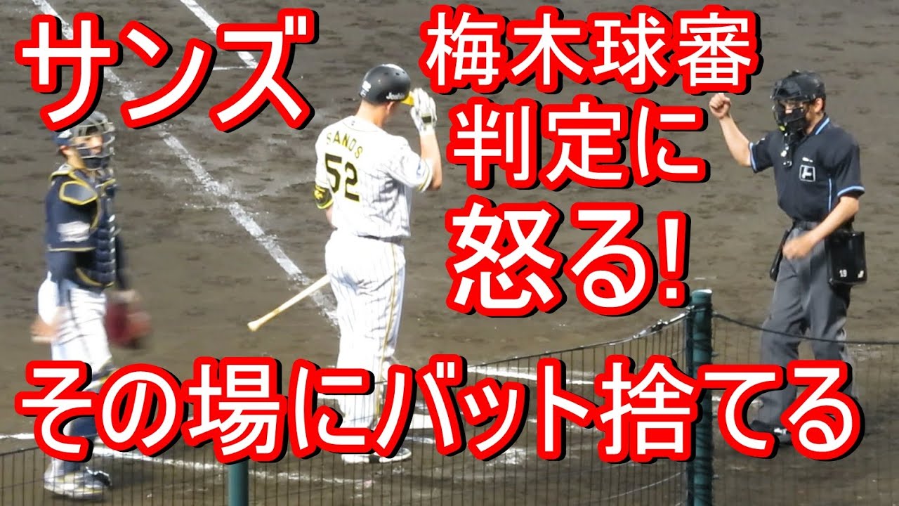 サンズがハーフスイングで三振。ヘルメットとバットをその場に置きました。退場させられなくてよかった。